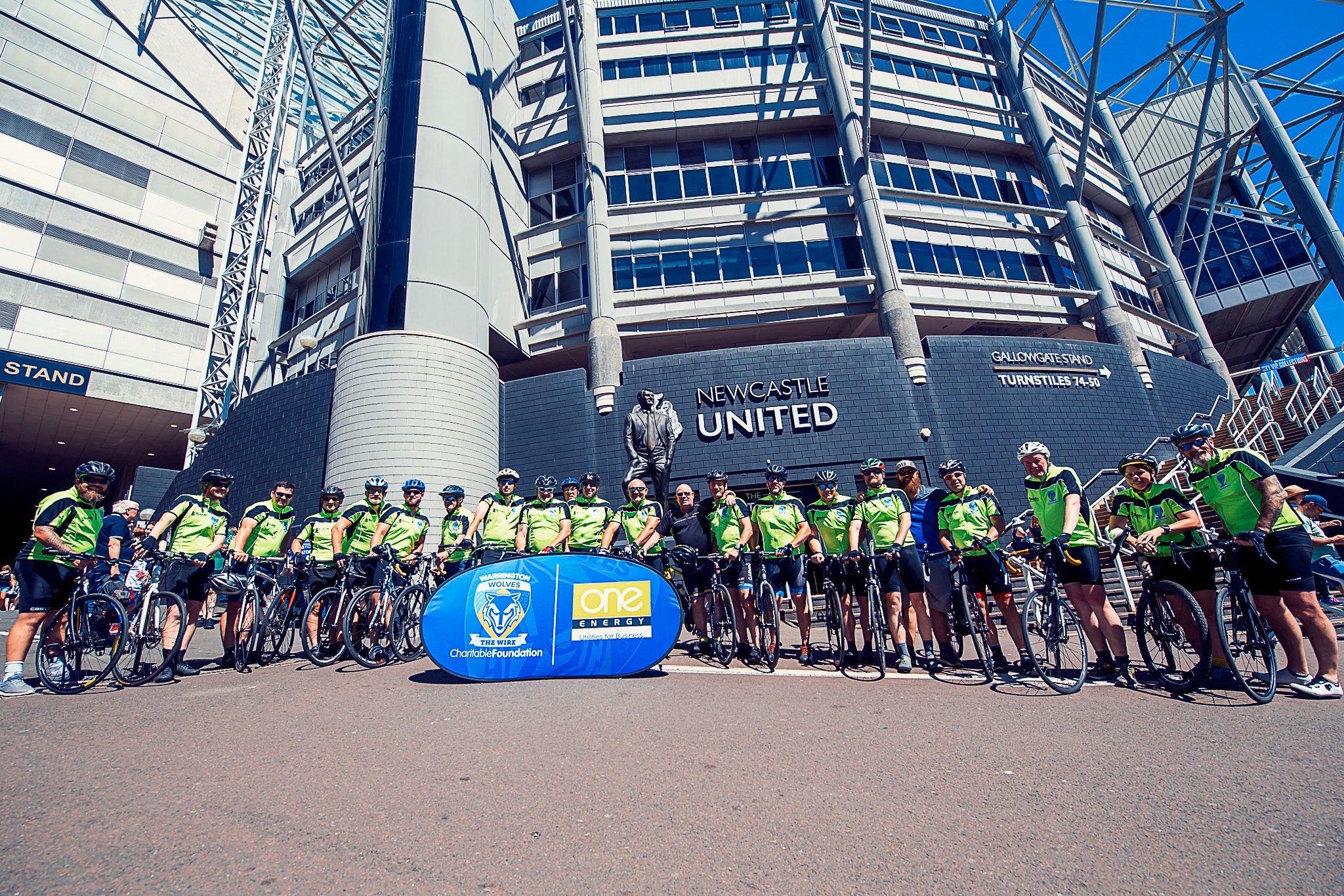 After cheering the rest of her team on from the support vehicle on the Saturday, Alex was, remarkably, back in the saddle for Sunday’s 10-mile ride to St James’ Park, home of Newcastle United and host of rugby league’s Magic Weekend.